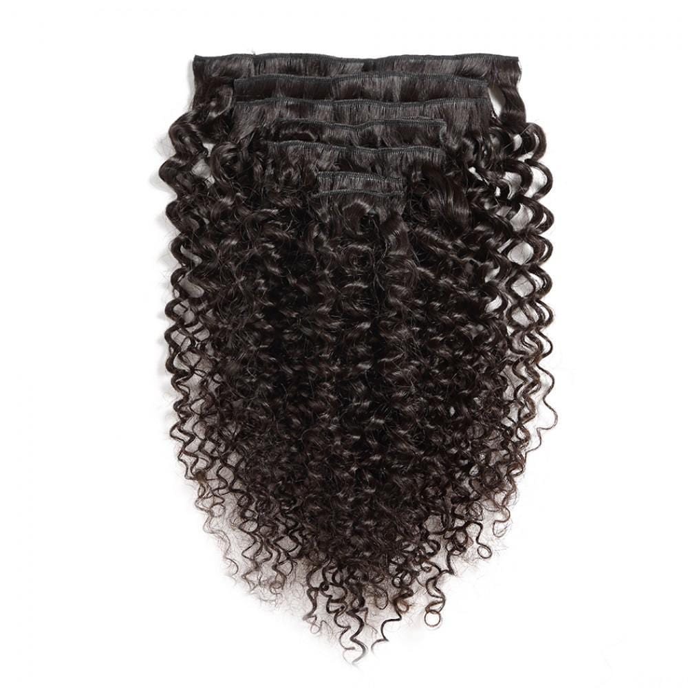 100G Brazilian Hair Kinky Curly Clip in Hair Extension #1B 7PSet