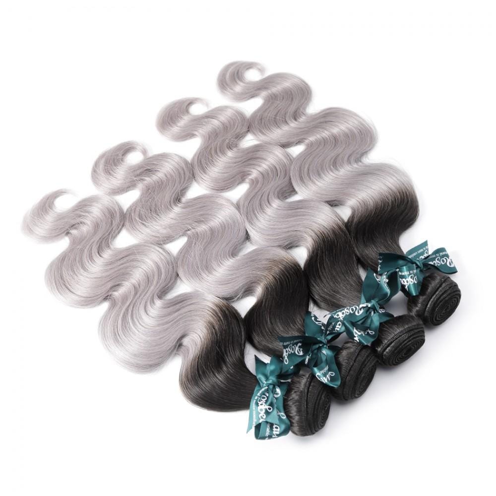 8A #T1B/Grey Body Wave Hair Bundles 3:7